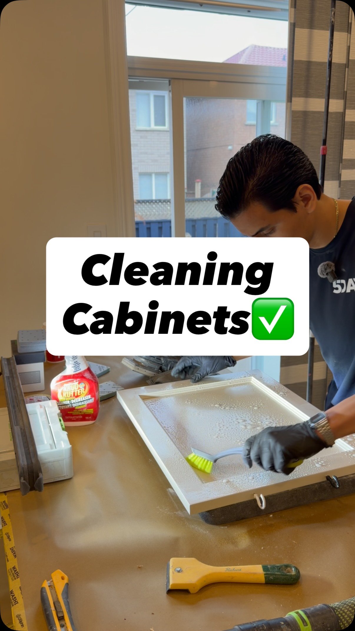 I spray your kitchen onsite to help pass the savings to you! To ensure a clean safe environment, i use air scrubbers and proper ventilation systems to purify the air, along with a custom spray booth to contain paint fumes. During cleaning and sanding i use a dust extraction system to eliminate airborne particles, maintaining a clean workspace and consistent quality control from day 1 to day 5.